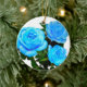 Blue rose blue flowers ceramic ornament