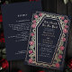 Make a bold statement of eternal love. This gothic wedding invitation features ‘Till Death Do Us Part’ in a coffin-shaped frame, adorned with thorns, roses, real foil accents against a deep blue background. Perfect for a hauntingly romantic celebration! Personalize the text, font, and background color to suit your design preferences. Matching Items in our shop for a complete party theme.