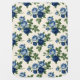 A seamless blue rose floral pattern featuring dark and light blue roses with green leaves.