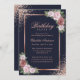 Blue Rose Gold Blush Pink Floral Birthday Party Invitation