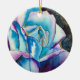 Watercolor painting design by artist Sacha Grossel of blue and purple rose with dripping paint technique. Gothic and expressionist.