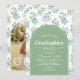 Celebrate your big achievement with this elegant "Blue Rose and Sage Green" graduation party invitation. Featuring a delicate watercolor floral pattern and a sophisticated arched frame for your event details. This vintage-inspired design is perfect for high school or college graduates looking for a soft, coquette aesthetic. Easily personalize with your name and party information for a memorable floral celebration.