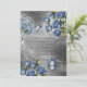 Celebrate your special day with this elegant blue roses wedding invitation featuring a stunning bouquet of soft blue roses tied with a delicate ribbon and accented by a graceful butterfly. Set against a modern silver textured background, this design blends romance with sophistication. Perfect for classic, modern, or winter weddings, this floral wedding invitation adds timeless beauty and charm to your big day. Personalize with your wedding details to create a memorable first impression for your guests.