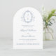 Blue Roses Crest Monograms Catholic Wedding Invitation