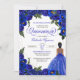 Blue Roses & Gold Fancy Ball Gown Quinceanera Invitation