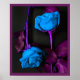 Dramatic photo art of two blue roses symbolizing unrequited love. With dark purple decorative border and drop shadow to add depth. Proportionally sized to fit standard frames. Available in various sizes with optional framing. By Dwight Bennett from Natureworld Art.