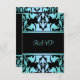 This Elegant customizable RSVP features a blue damask pattern on a black background. Customize it by adding your details in the font of your choice!