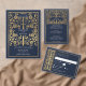 Blue Royal Medieval Silver Sword Wedding Foil Invitation