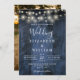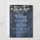 Blue Rustic Barn Wood String Lights Photo Wedding Invitation