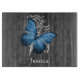 Create a unique gift with a Blue Rustic Butterfly Personalized Glass Cutting Board. Cutting board design features a butterfly against a white leaf vine and dark gray wooden background with a place to personalize with your name. Additional items available with this design as well. Please contact me directly for assistance with personalization.