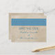Elegant and chic Rustic Damask Save the Date Postcard featuring a vintage textured paper look background and a flourish damask pattern border in blue. Easy to customize, simply add your wedding details. Click "Customize It" to find more personalization options.