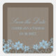 Elegant and refined Rustic Floral Save the Date Stickers featuring a two-toned digital art wood panel background in dark brown and a lovely cascade of beautiful flowers framing the bottom of the design in light blue. This sweet design is perfect for announcing a seasonal wedding with an outdoor or garden theme. Easy to customize, simply add the details of your wedding in the text fields provided. Click on the "Customize It" button to find additional personalization options.