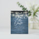 Blue Rustic Lights Photo QR Code Save the Date Postcard