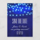 Blue Rustic Night String Lights Save Date Postcard