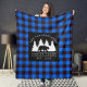 Blue Rustic Plaid Bear Woods Family Cabin Fleece Blanket