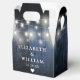 These blue string lights rustic wood boho barn wedding favor boxes can be personalized with your information in chic typography. Designed by Thisisnotme©