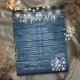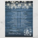 This stylish rustic wedding schedule-timeline featuring pretty string lights and mason jars can be personalized with your wedding details in chic white lettering on a blue wood panels background. Designed by Thisisnotme©