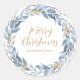 Blue Rustic Watercolor Personalized Christmas Classic Round Sticker