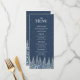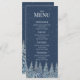 A beautiful menu for your rustic winter wedding table with a snow covered night forest in dark blue and white. Customizable with your dinner details, available in a wide range of matching wedding products.