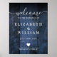 This blue rustic wood wedding welcome sign can be personalized with your information in modern typography. Designed by Thisisnotme©