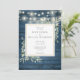 Blue Rustic Wood Greenery String Lights Wedding Invitation
