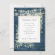 Featuring glowing string lights, delicate watercolor country garden greenery on a blue rustic wood background, this stylish baby shower thank you card can be personalized with your special thank you message and names, with a silver sage background on the reverse. Designed by Thisisnotme©