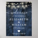 Blue Rustic Wood String Light Wedding Welcome Sign