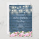 Having your Blue Rustic Wood String Lights Floral Wedding Invitation match the theme of your party is a great detail that your guests will appreciate. The thoughtfulness of a consistent party theme is often appreciated and can show your guests that you can host a cohesive event.