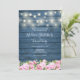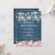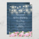Blue Rustic Wood String Lights Floral Wedding Invitation