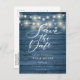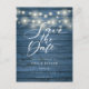 Blue Rustic Wood String Lights Save the Date Postcard