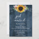 Blue Rustic Wood Sunflower Lights Just Married Invitation