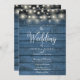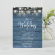 Blue Rustic Wood Winter Snow String Lights Wedding Invitation