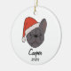 Celebrate your furry friend's very first holiday season with our adorable Blue Sable Frenchie Santa Hat Christmas Ornament. This delightful ornament features a charming illustration of a blue sable French Bulldog wearing a Santa hat, with the special addition of "My First Christmas" on one side. What makes it even more unique is the option to customize the other side with your pet's name and the year, creating a cherished keepsake to commemorate this special milestone.
