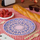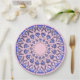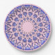 Make your table setting shine with this chic geometric paper plate, featuring a mesmerizing circular arrangement of diamands that make a spiritual mandala in shades of royal blue and light blue. Set against a soft pastel pink background, the intricate design is enriched with deep royal blue and violet tones, creating a perfect blend of luxury and modern elegance. Perfect for adding a touch of elegance to birthdays, weddings, bridal showers, or any special occasion..