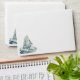 A beautiful blue sailboat crossing the ocean waves features on the envelope. Personalize with your personal message or return address to create bespoke stationery.