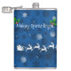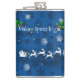 Celebrate the magic of the season with this Blue Santa’s Sleigh and Reindeer Flask! Featuring Santa’s sleigh pulled by flying reindeer over a snowflake background with falling snow, it captures the whimsy of the Christmas theme. Adorned with holly berries and cheerful festive typography proclaiming “Making Spirits Bright,” this flask makes a perfect holiday drinking gift, bringing joy and festive flair to every holiday gathering.