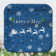 Blue Santa's Sleigh and Reindeer Paper Plate