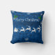 Blue Santa's Sleigh and Reindeer Throw Pillow