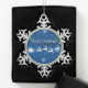 Add a whimsical touch to your Christmas tree this holiday season with a Blue Santa's Sleigh and Reindeer Christmas Snowflake Ornament. Ornament design features Santa's sleigh adorned with holly berries and pulled by his reindeer against a blue background with falling snowflakes. Additional gift and holiday items available with this design as well.