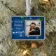 Celebrate the magic of the season with this Blue Santa’s Sleigh and Reindeer Frame Photo Ornament, featuring Santa’s sleigh and flying reindeer gliding across a delicate snowflake background accented with festive holly berries. Your couple’s photo is beautifully framed with festive typography, creating a charming holiday photo keepsake perfect for commemorating our first Christmas. A delightful addition to your Christmas decor, this ornament captures the joy and wonder of the holidays.