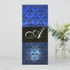 BLUE SAPPHIRE AND BLACK DAMASK MONOGRAM , white Invitation