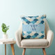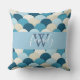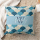 Pastel blue scales throw pillow with custom monogram in elegant font for a perfect coastal decor