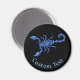 Blue scorpion drawing with 3D shading. Custom background color. Custom text.