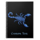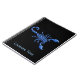 Blue scorpion drawing with 3D shading. Custom background color. Custom text.