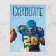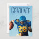 Blue Script Overlay Graduate Photo Football Player Postcard