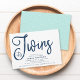 Blue Script & Pastel Mint It's Twins Baby Shower Invitation