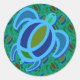 Sea turtle swimming diagonally. Patterned shell and body with primarily blue colors. Sea turtle art.