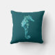 Blue throw pillow. Square pillow with seahorse mandala drawing on both sides.