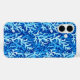 Phone case in a pattern of stylized, seaweed-inspired fronds in shades of icy blue, gracefully intertwining against a rich cobalt background, for a dynamic, marine-themed design
