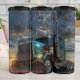 Blue Semi Truck Sunset Scrollwork Thermal Tumbler